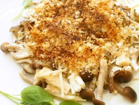 마늘과 허브 향이 나는 버섯 요리, 빵 부스러기가 포인트에요!