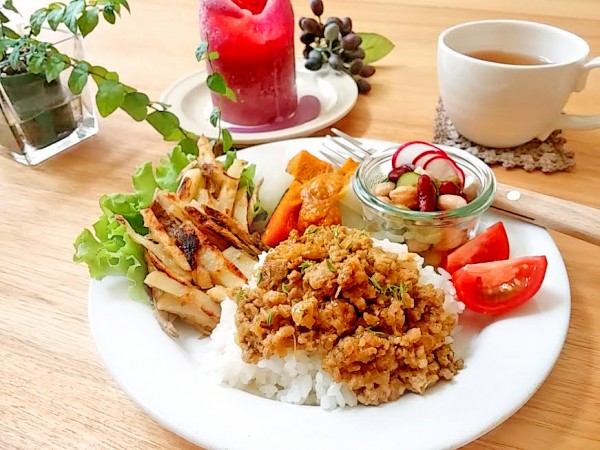 4. 그릇에 밥을 담아 순서 3을 얹는다. 취향에 따라 타임(생)을 뿌려 완성한다.