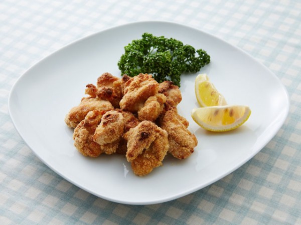 1.  닭고기에 튀김가루를 뿌려 표면에 잘 묻혀 둔다.
