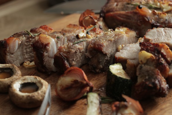 1. 통삼겹에 후추,소금을 뿌린 후 통마늘과 함께 280도에서 10분간 구워준다.