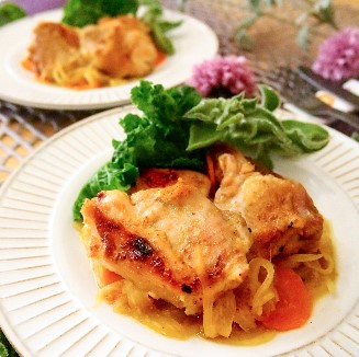 - 1.닭고기는 여분의 지방과 근육을 제거하고 한 입 크기로 자른다. 포크 등을 사용하여 피부에 군데 군데 구멍을 낸다.2.그릇에 ★의 양념장 재료를 모두 넣고 닭고기를 넣어 30분 이상 절인다.3.고기를 절이는 동안 야채를 손질한다. 양파는 얇게, 셀러리는 어슷썰고, 당근은 얇고 둥글게 썬다.4.닭고기는 껍질이 붙은 면을 아래로 놓고 그릴러에 일렬로 놓는다. 그릴러 눈금 5에서 10분 정도 굽는다. 뒤집어서도 10분 정도 굽는다.